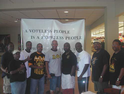 Several members of Mu Lambda spent Saturday, August 2nd, 2008, at the Giant Food Store in SE, Washington DC and conducted the first of several upcoming voter registration drives in the city and also in Maryland and Virginia. The “A Voteless People is a Hopeless People” drive was able to register 20 new voters from the District, as well as one individual from Maryland. During the 3 hour period, Brothers answered questions regarding registration deadlines, status and eligibility. Washington DC Councilman & Brother Marion Barry was in attendance and thanked the chapter for coming to the community, and praised the Brothers of Mu Lambda for all the good work the chapter has done.
