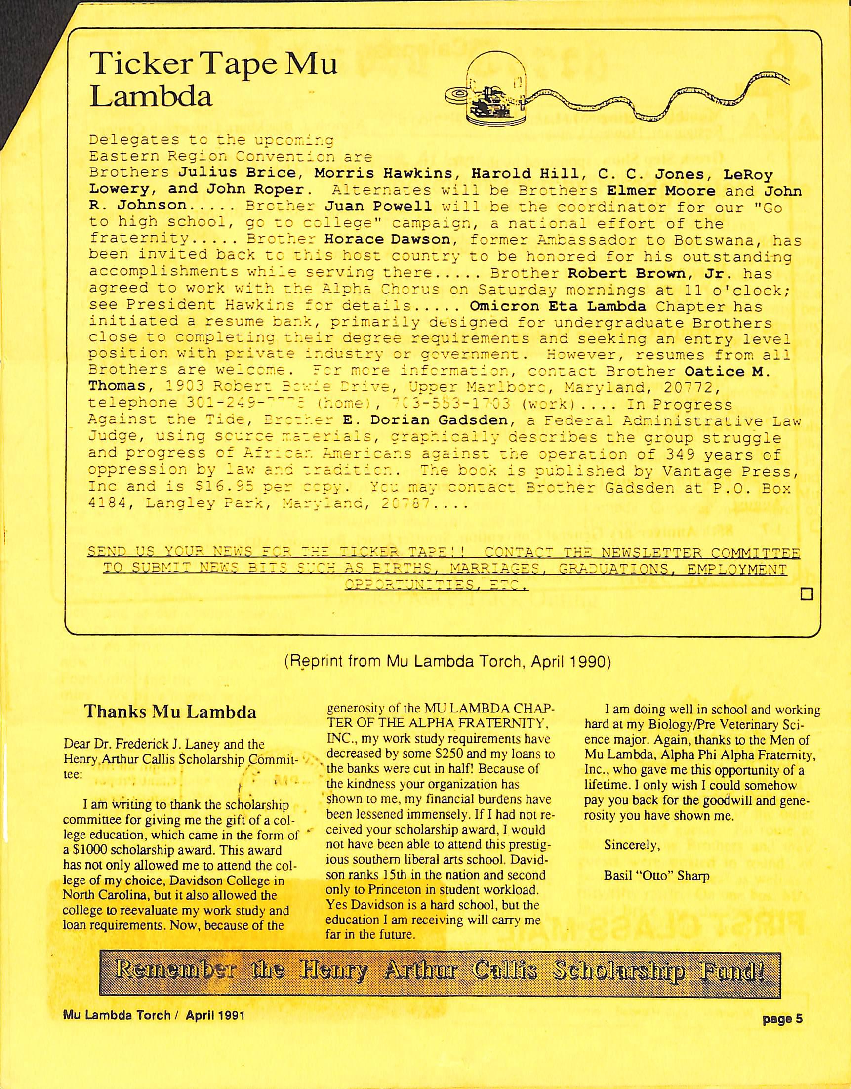 Delegates tc the upcot.ir.g Eastern Region Convention are Brothers Julius Brice, Lowery, and John Roper. R. Johnson Brother Juan Powell w to high school, go to collece fraternity been invited back tc t accomplishments while servinc agreed to work with see President Hawkins initiated aresume j close to completing position with p Brothers are we Thomas, 1903 Rc: telephone 301-2 Against the Tid Judge, using sour and progress cf A. oppression by lav: Inc and is SI6.95 4184, Langley Park,