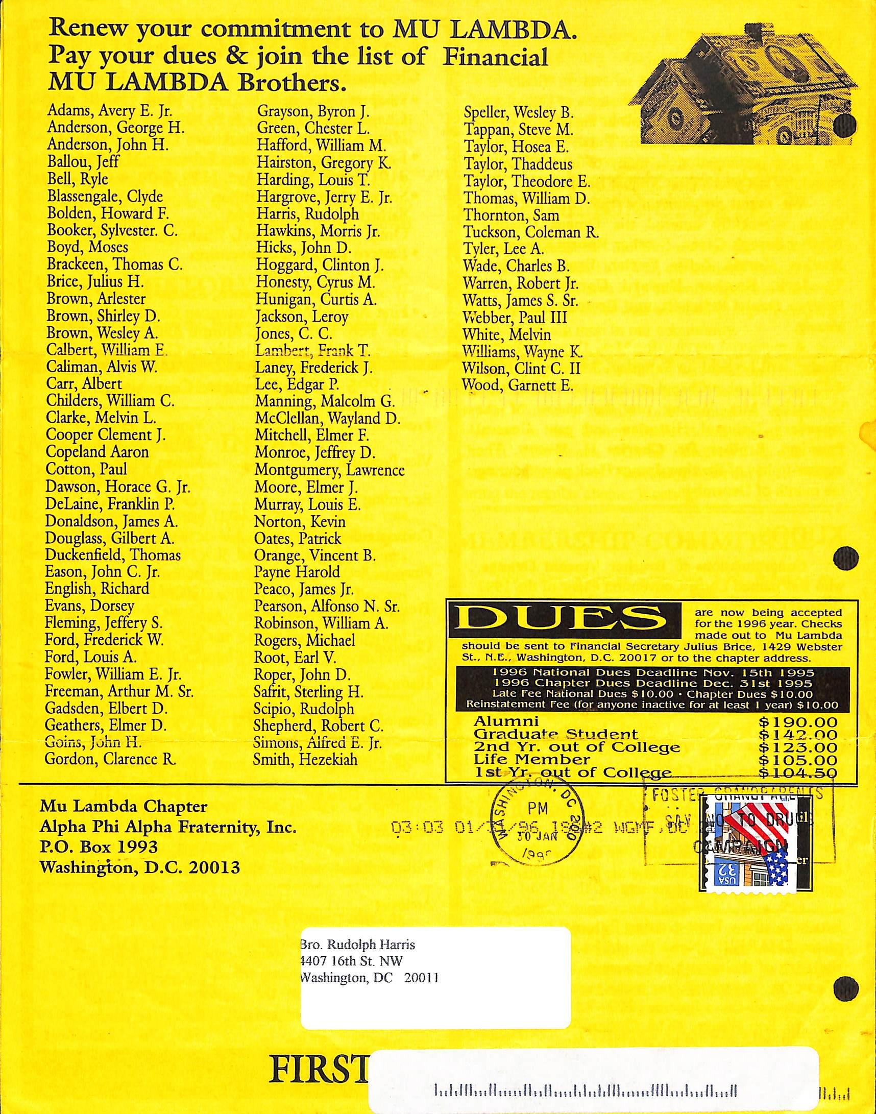 January/February1996Wasliingion,D.C.MULAMBDAChapter,AlphaPliiAlpharratemity.Incorporated