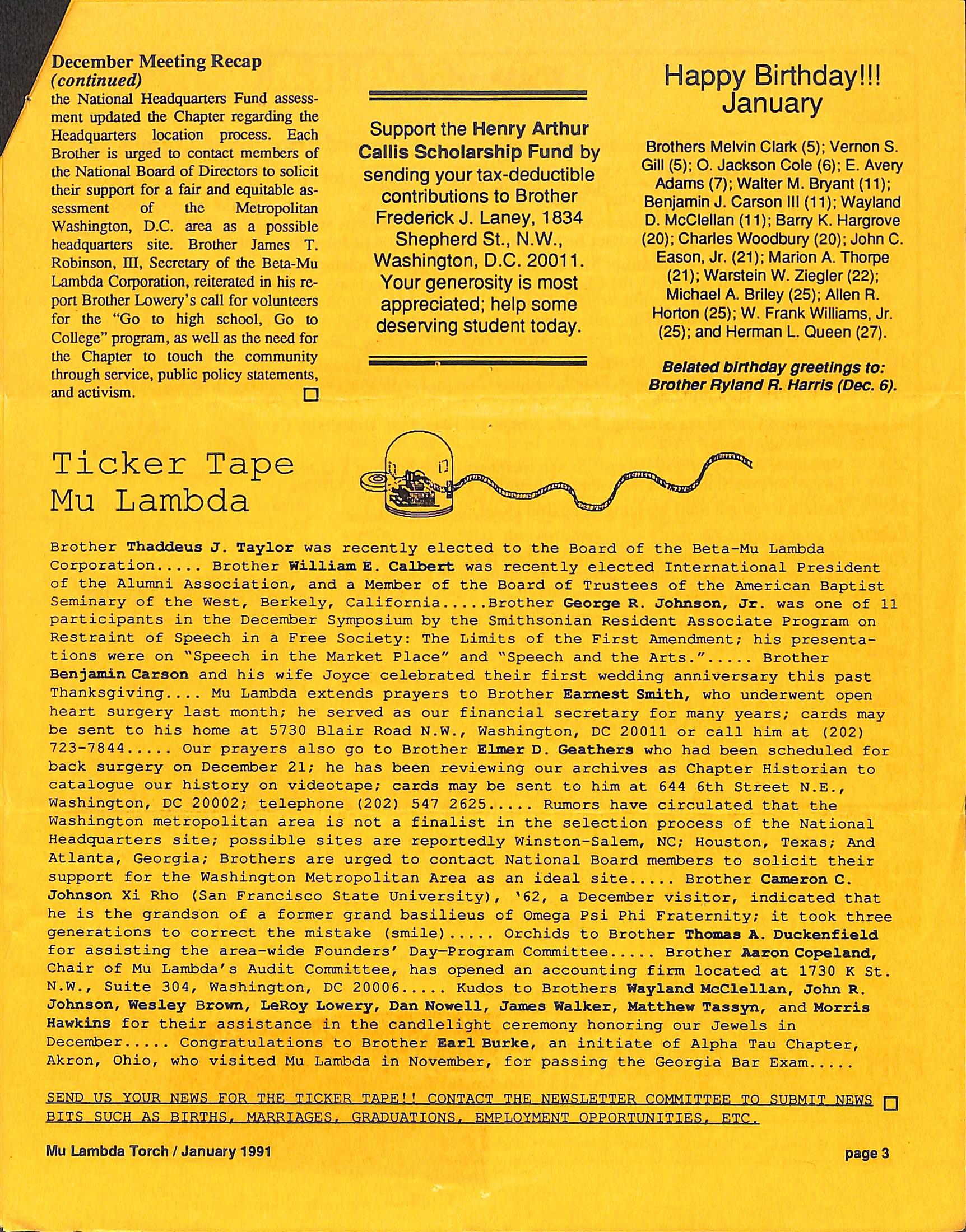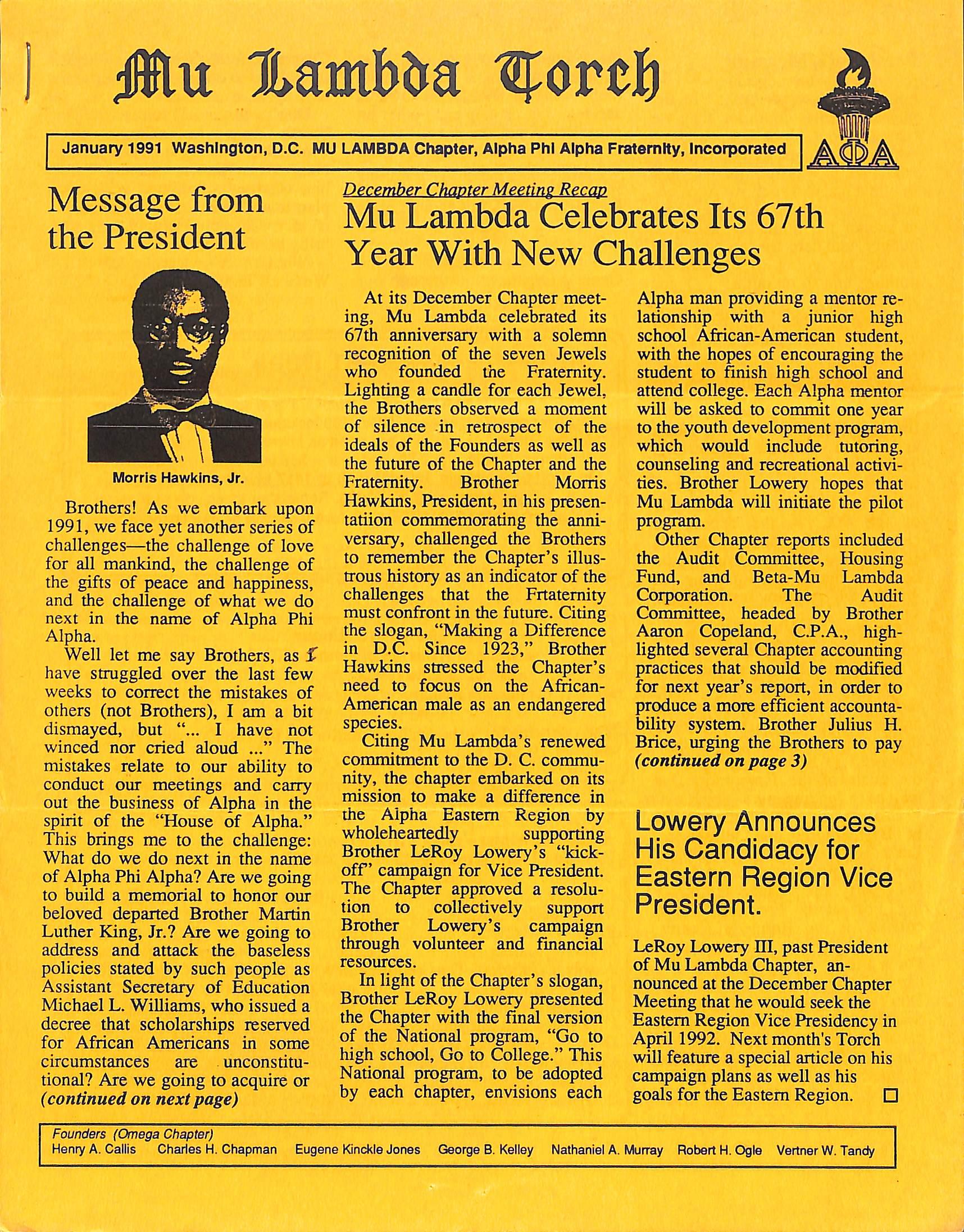 January 1991 Washington, D.C. MU LAMBDA Chapter, Alpha Phi Alpha Fraternity, Incorporated