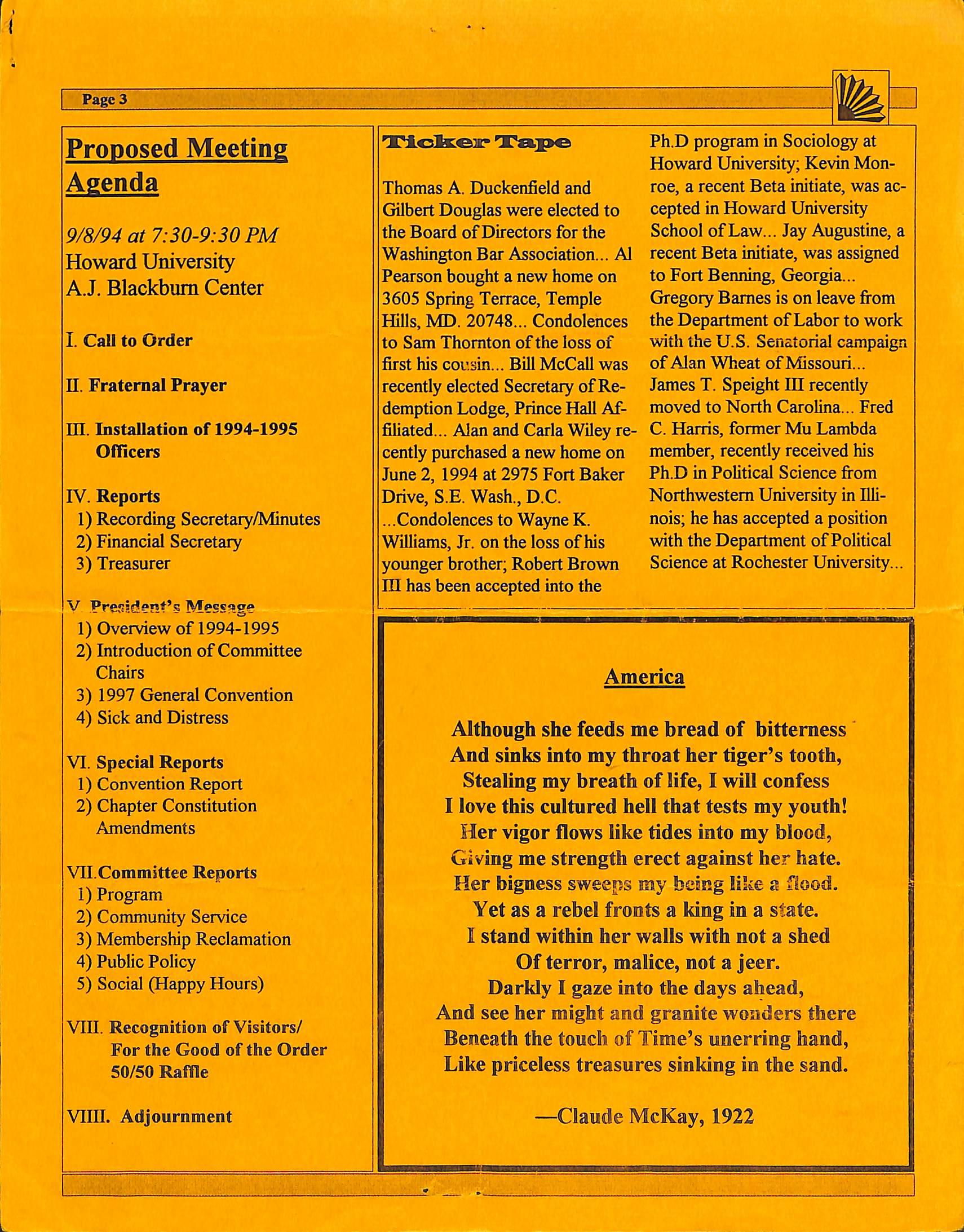 Once again, welcome back! Ilook forward to your energy, vision, and enthusiasm as we embark on anew fraternal year. See you on Thursday, September 8, 1994 on the campus of Howard University.