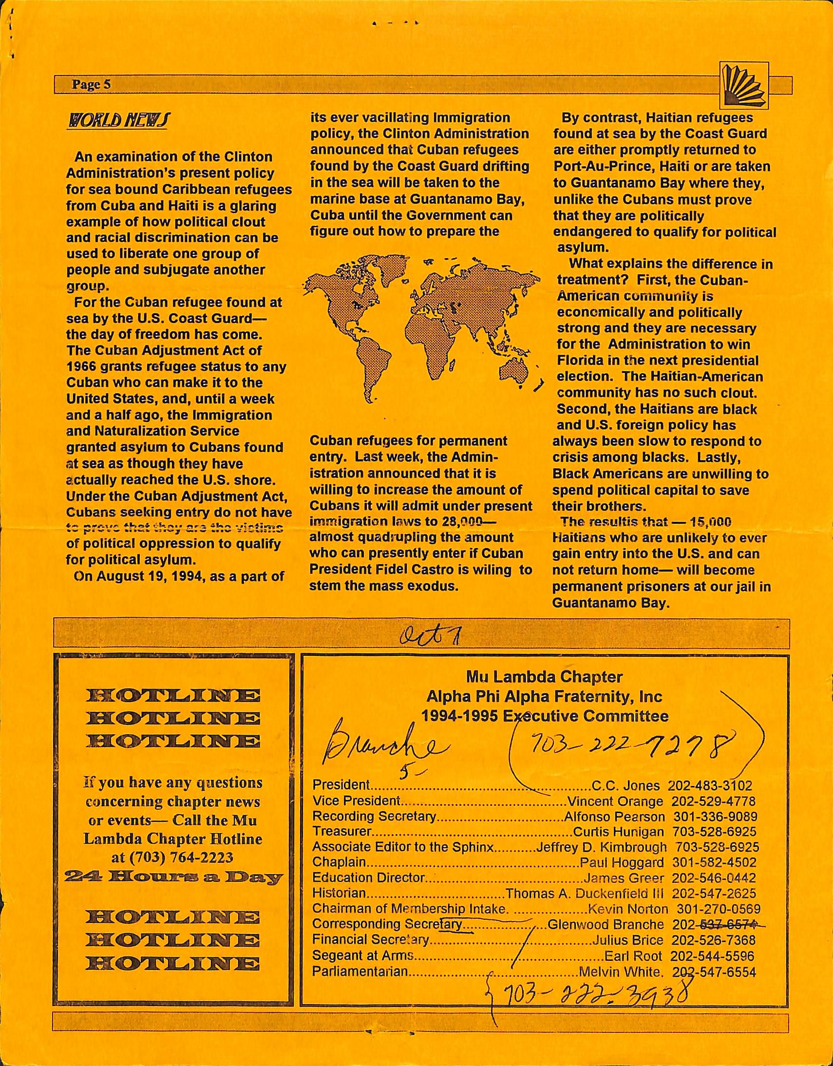 “Postage Paid” stamp number which eliminates the need for stamps. This should be more cost ef fi cient and lead to the faster delivery of the newslet¬ ter. Also, Bro. Williams imple¬ mented atelephone hotline: (703) 764-2223 that will pro¬ vide updated information on ail Mu Lambda activities including regular activities, executive board meetings, committee ac¬ tivities, and Omega services.