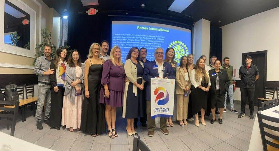 No dia 1º de maio, o Restaurante Tony's Grill, em Orlando, foi o cenário da inauguração do Satélite do Rotary Club Boca Raton West. O evento contou com a presença do Governador do Distrito, Douglas Heizer, e sua esposa, Dini Heizer, juntamente com as rotarianas Elizabeth Alderete, Patricia Curcobezki e Poliana Conti, que liderarão o satélite por meio dos programas do Rotary Means Business, assumindo os cargos de chair e co-chair. Também se juntaram a nós novos membros do Rotary Club e empresários da região de Orlando. Além disso, tivemos a honra de receber a presidente do Rotary Club de Barão de Cotegipe, no Rio Grande do Sul, Silvana Lorenzon, e sua família. Como bem ressaltou nosso governador em seu discurso, o Rotary Club é uma família, onde construímos relacionamentos e fazemos amigos ao redor do mundo. Fiquem atentos, pois muitas novidades estão por vir.