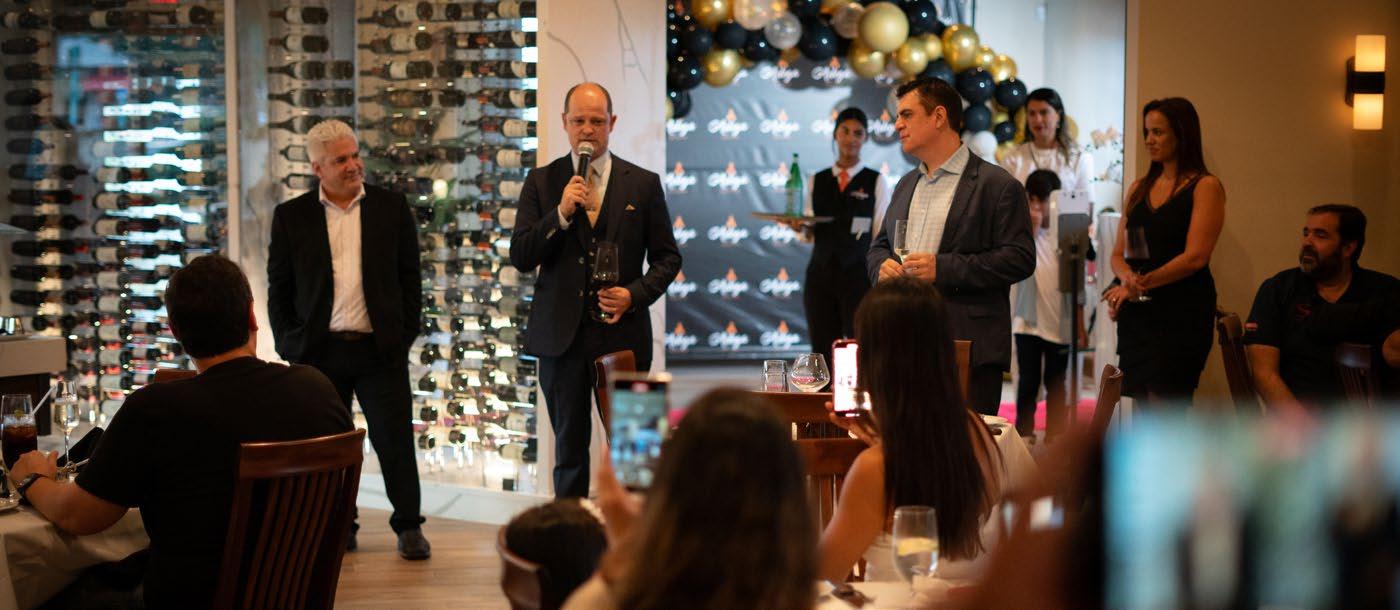 A Adega Gaúcha, renomada pela sua excelência em gastronomia e atendimento, celebrou a abertura de sua segunda unidade com um evento de inauguração que atraiu amigos, clientes fiéis e novos apreciadores. Três anos após o sucesso da primeira churrascaria, a nova localização em Kissimmee marca um momento significativo para os sócios Ricardo Oliveira, Fabiano Borsato, Max De Paula, Kelly Borsato e Valmor De Almeida, que além de ser o Gerente Geral, é também o sócio operador desta unidade.