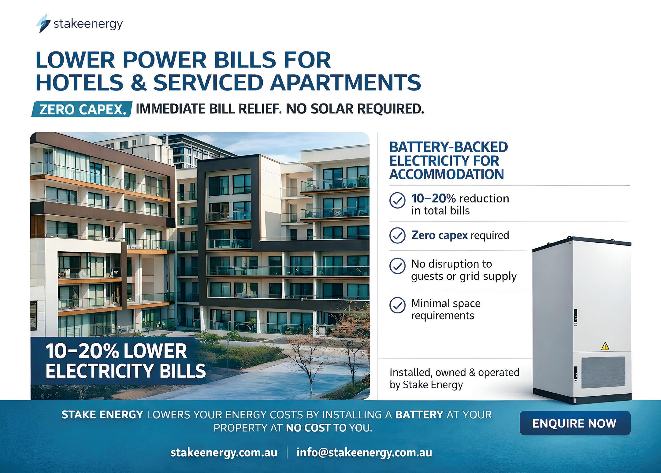 Amitay Smirra: Accommodation operators sit in an awkward middle ground: they have commercial-sized energy bills and complex loads (HVAC, hot water, laundry and kitchens), but they rarely have the time or appetite to become energy-market experts. Partnering with an energy company that specialises in commercial operations helps turn those moving parts into a managed outcome.