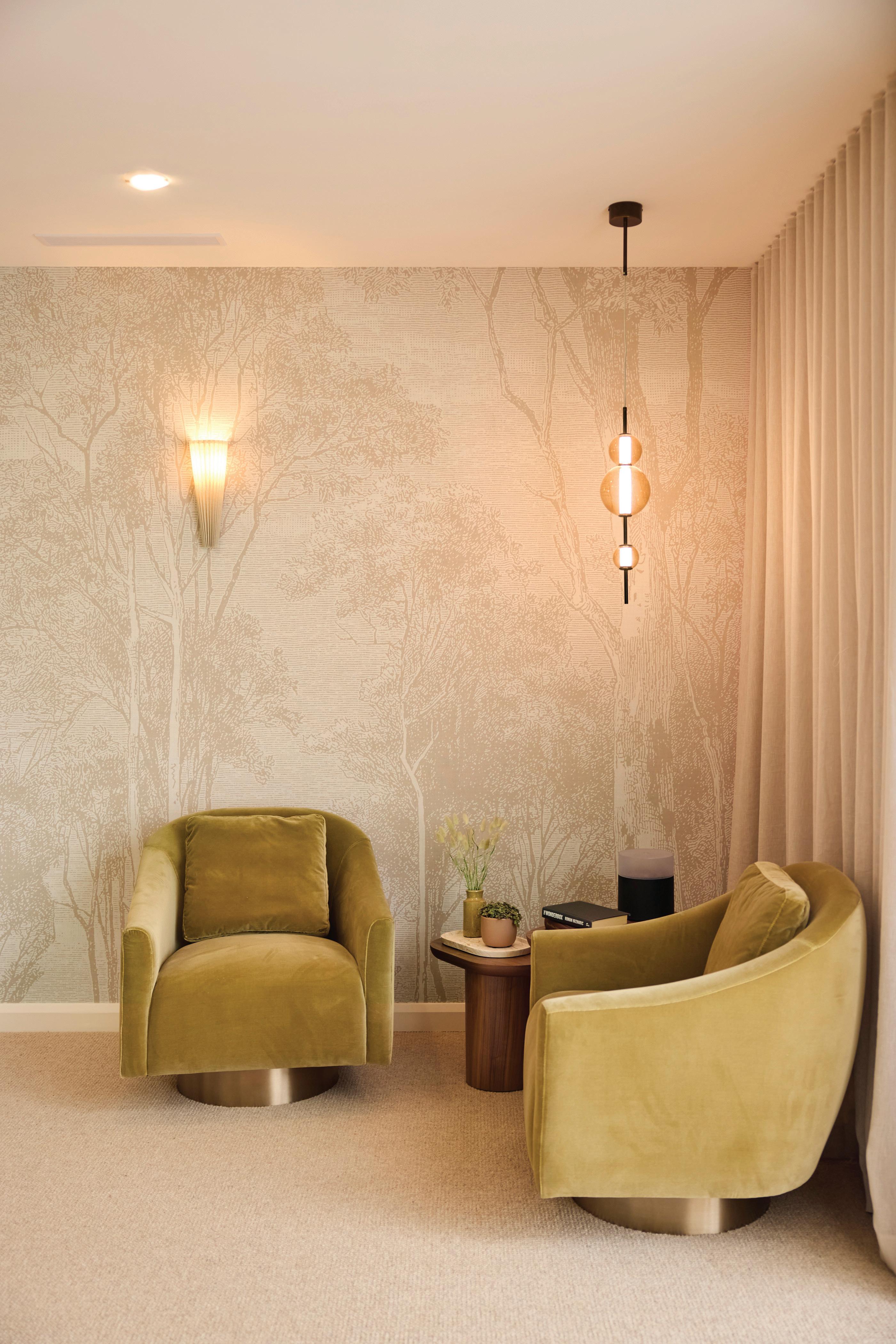 “Many hotels opt for a simple feature wall behind the bedhead, however applying a smaller area of wallpaper, for