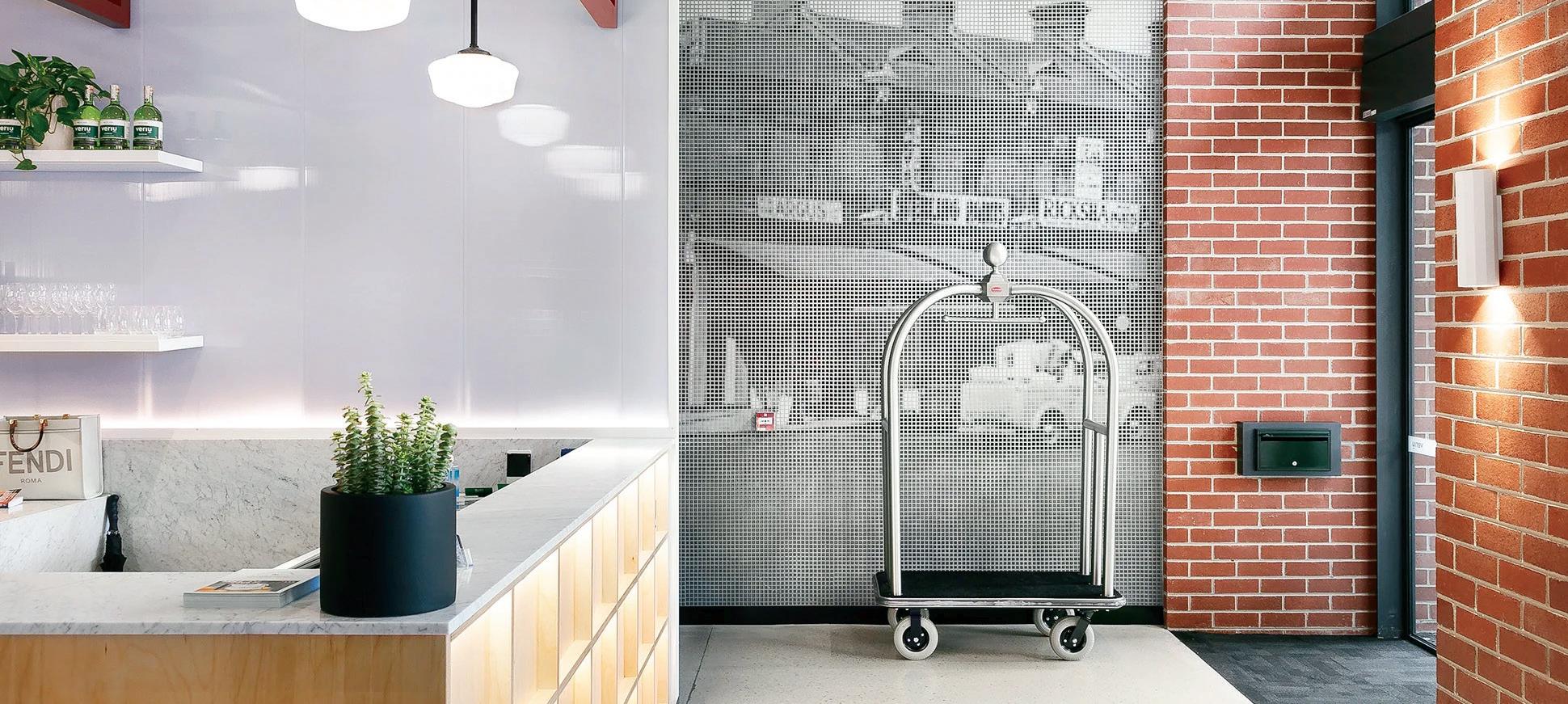 ‘Australiana’, featuring patterns and murals of Australian flora and fauna. Think simple etched illustrations and vintage botanical drawings. Light sage greens and hues of bark coupled with linen textured backgrounds create stunning visual identity whilst connecting guests back to the country they are staying in.