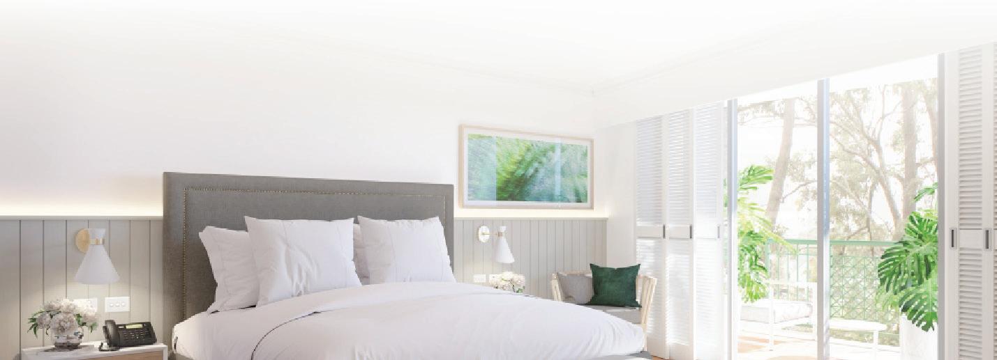 A popular option for accommodation providers is to focus on neutral tones which lend spaces a calm, relaxed feeling. Pops of colour or texture can be added on feature walls, architraves or cornices. This keeps your colours in style and on trend, without having to repaint the entire property.