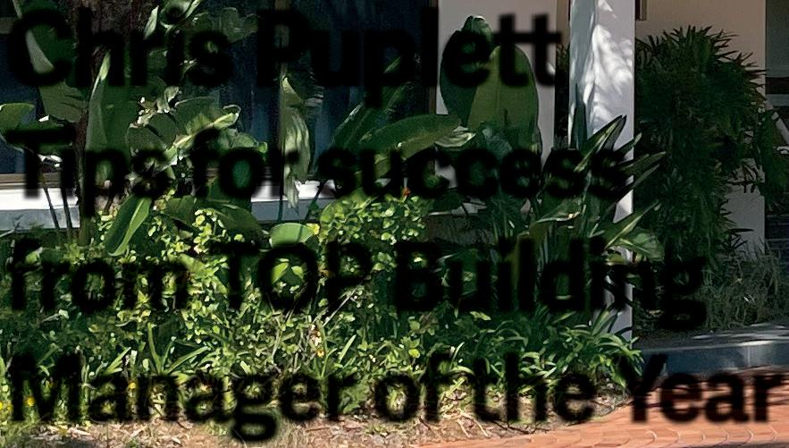 We had the pleasure of interviewing Chris Puplett , who took out the Building Manager of the Year title at ARAMA’s prestigious TOP Awards in July; read his story on page 16. But that’s not all – we talk with Michael Wigglesworth who reveals his fascinating backstory and the road he’s travelled before finding paradise at Mermaid Beach on the Gold Coast.
