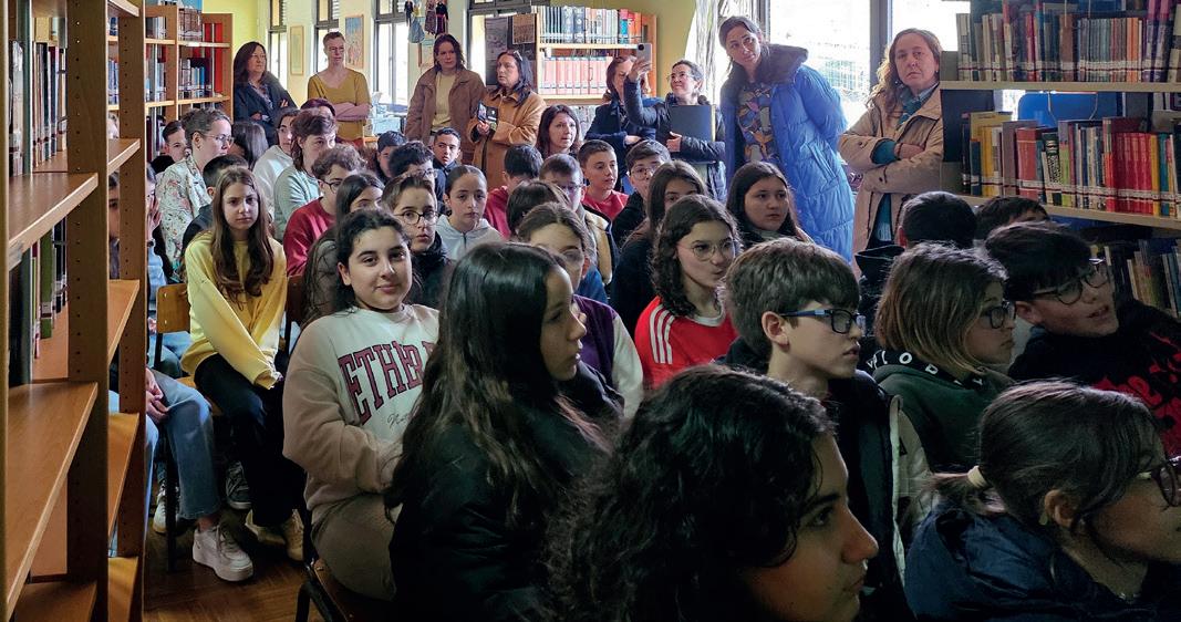O objetivo da visita foi conhecer as práticas de colaboração das bibliotecas escolares com docentes, alunos e famílias, bem como promover a partilha de experiências. Durante o encontro, os visitantes acompanharam atividades desenvolvidas com turmas do 6.º ano relacionadas com o projeto de teatro inspirado na obra “Stop”, que envolve o Centro de Apoio às Aprendizagens, o projeto de Musicoterapia da Câmara Municipal de Valongo e a Biblioteca. Os alunos apresentaram trabalhos realizados nas disciplinas de Inglês e História, incluindo uma exposição sobre profissões desaparecidas.