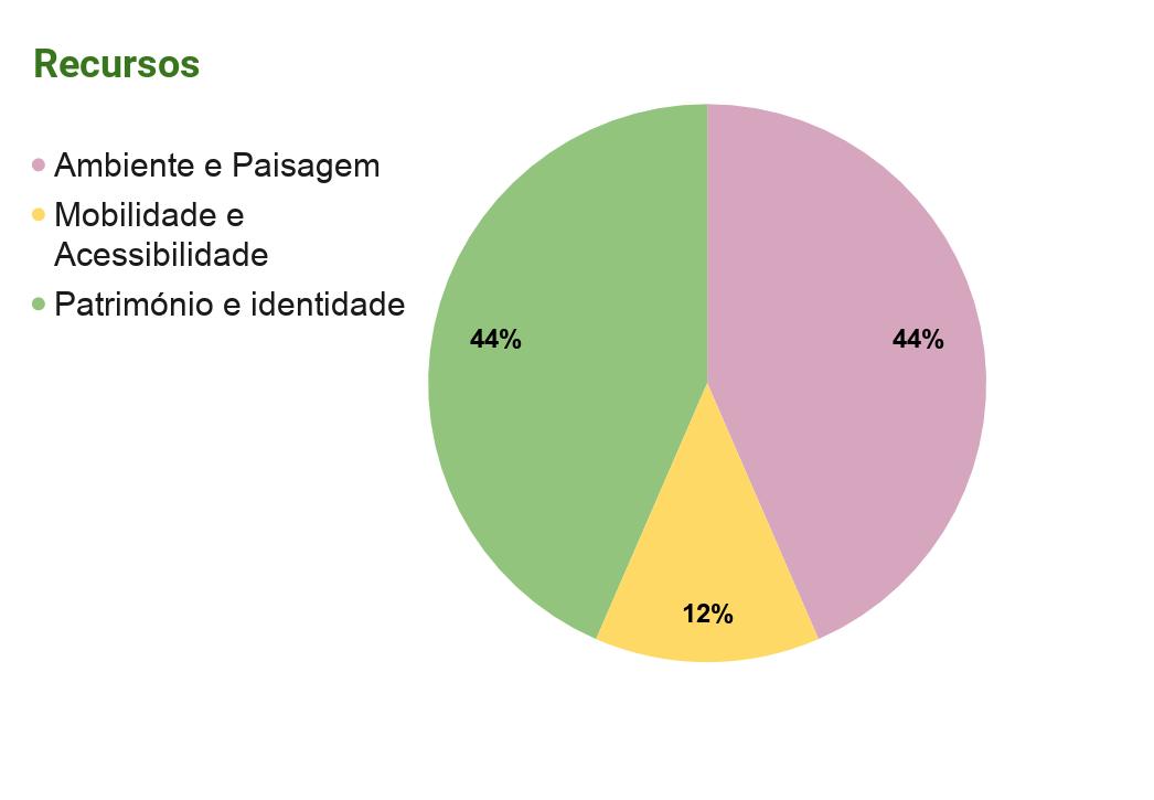 Por último, foi sublinhada a questão das infraestruturas urbanas (6%), nomeadamente as dificuldades dos serviços de coleta seletiva de resíduos urbanos e, por fim, foram apontadas preocupações com o património e identidade (4%), com enfoque sobretudo nos moinhos em ruínas e na pressão urbanística sobre o património cultural