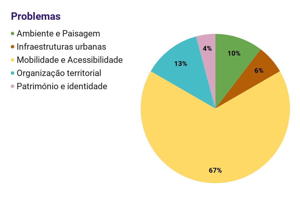 O segundo problema colocado foi a questão da organização territorial (13%) justificada com o crescimento desordenado e dificuldade de organizar a implantação equilibrada no território dos diferentes usos