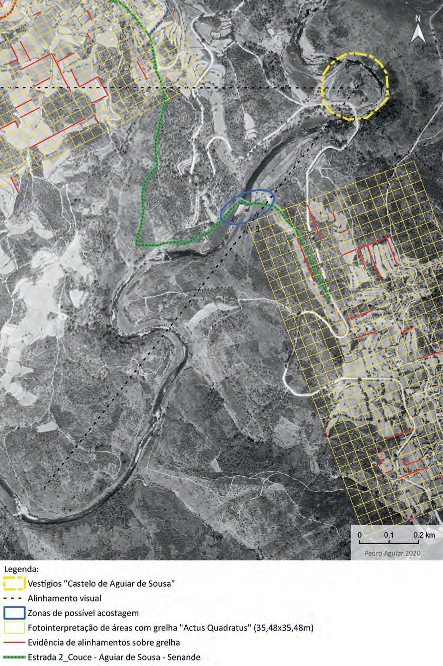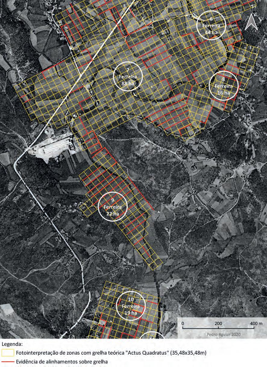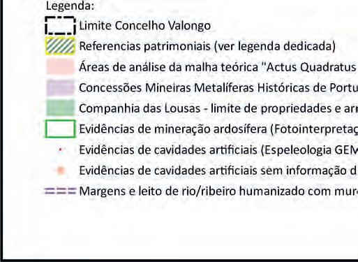 No trabalho de investigação, recorremos muito a cartografia e fotografia aérea, cujo trabalho foi realizado por Pedro Aguiar6, de que salientamos as imagens tratadas em que aponta as hipóteses de “parcelário agrícola”, assim como toda a localização e inventário de estruturas hidráulicas, de marcas de estradas e caminhos, de acostagens fluviais, entre outras marcas na paisagem cultural de Valongo.
