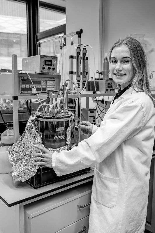 De productie van de start-up zit inmiddels ergens tussen laboratorium en pilot in. Van der Hoek: „We kweken al 40 liter per batch. Dat kan nog hier in het laboratorium, maar we willen snel opschalen naar een eigen locatie. In 2028 moet er een commerciële proeffabriek draaien, waarin we tientallen kilo’s glycogeen produceren.”