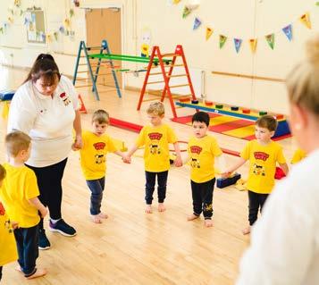 Make sure your Tumble Tot (or Gymbob) wears their T-Shirt of Confidence to classes as all their classmates will be wearing theirs too. You will find more top tips on page 7 of this handbook. Our specially designed, brightly coloured, wooden and foam equipment will help your child develop their physical skills of agility, balance, climbing and coordination. Each class is tailored to the age and stage of a child’s development which you can read more about on pages 8-9.
