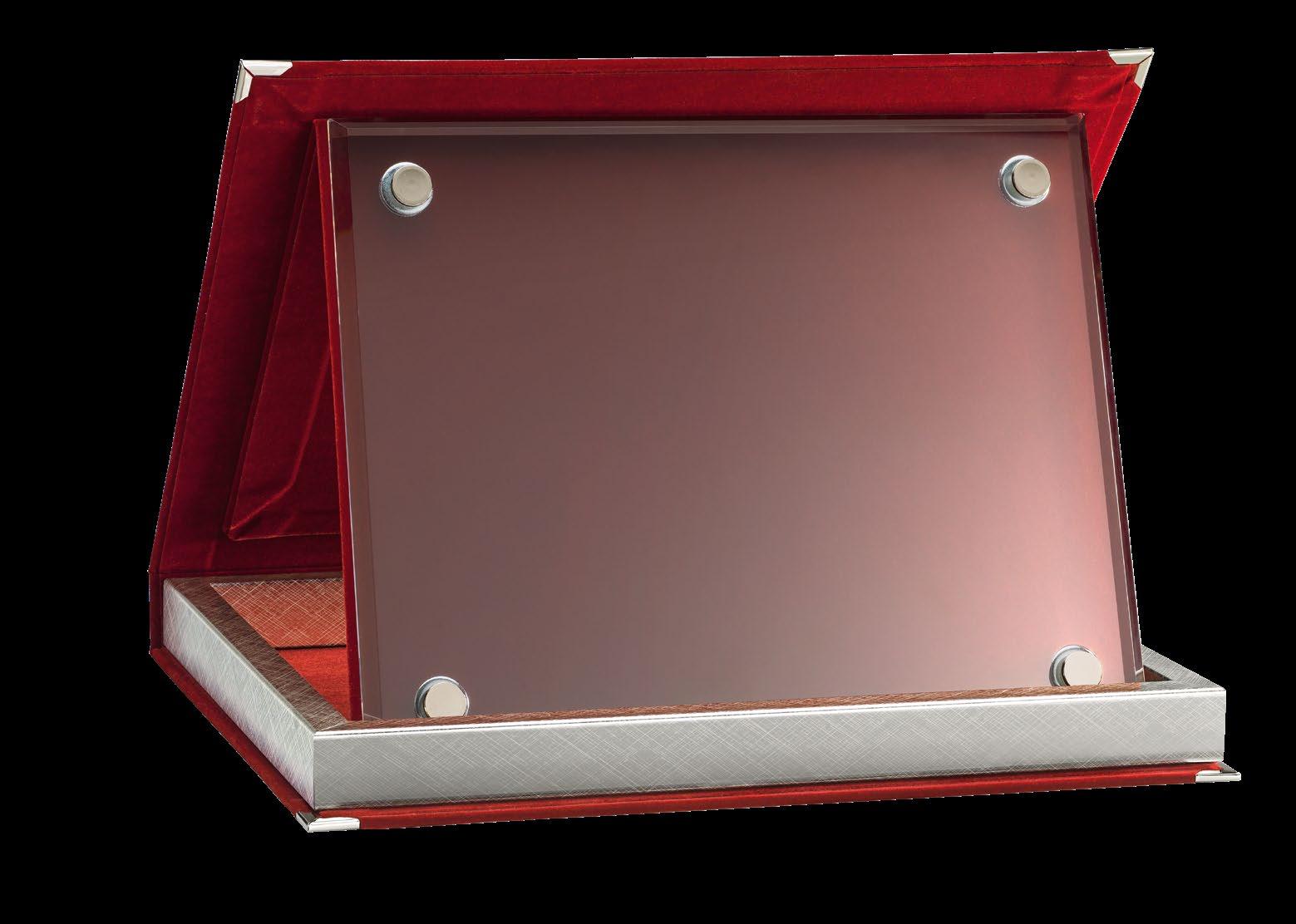 articolo item dimensione dimension spessore thickness spessore base base thickness targa plaque confezione pack personalizzazioni customizations fissaggio fixing MCR 40 BP 22,5x18,5 cm 6 mm 6 mm 12x17 cm 1 pz / pc stampa UV stampa transfer targa stampata incastro joint MCR 40 RP 22,5x18,5 cm 6 mm 6 mm 12x17 cm 1 pz / pc MCR 40 VP 22,5x18,5 cm 6 mm 6 mm 12x17 cm 1 pz / pc NEW Scatola regalo Gift box CV 10 - Cofanetto velluto blu e raso su richiesta CV 10 - Blue velvet and satin casket on request 13 methacrylate metacrilato