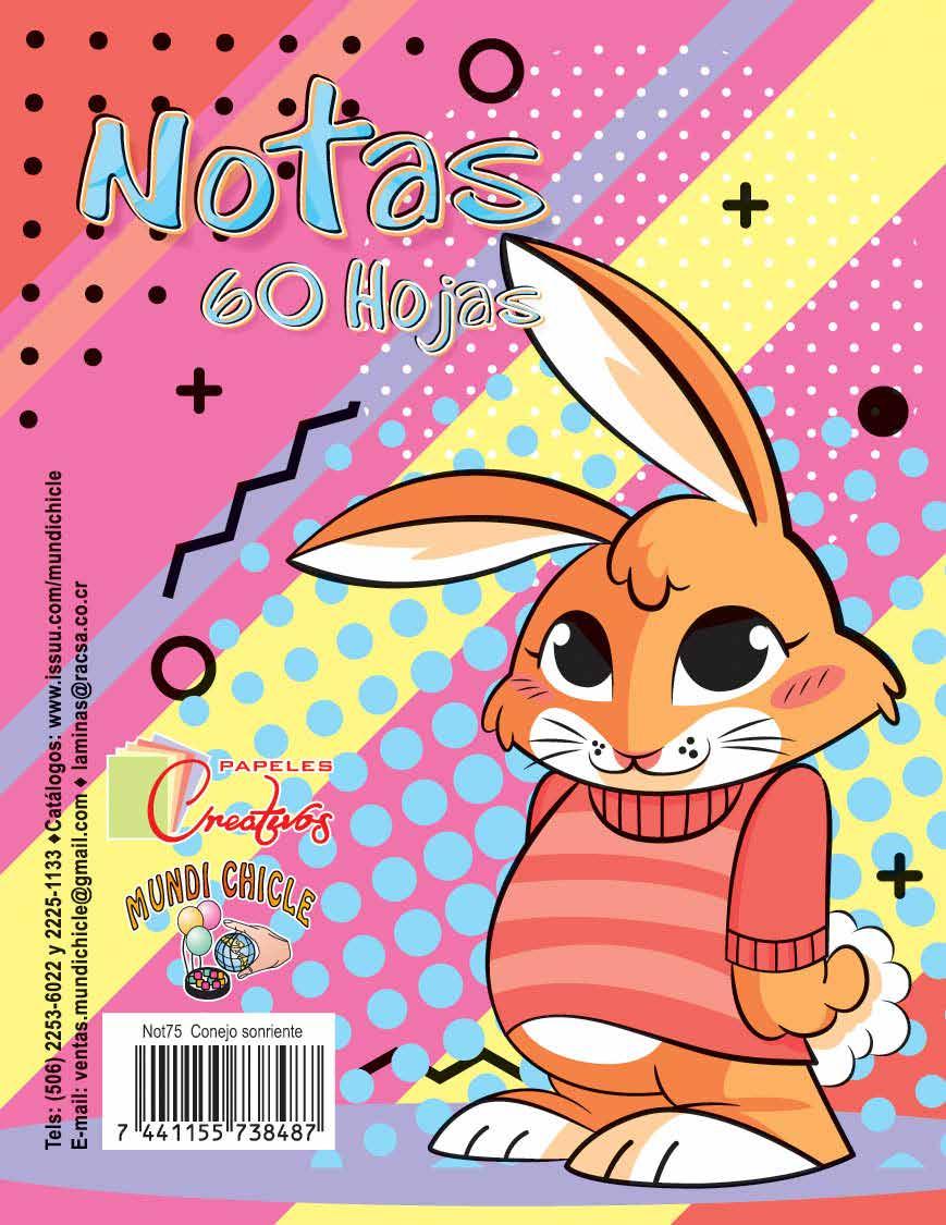 Not75 Conejo sonriente - Tamaño 5.5” x 4.25” - 60 Hojas