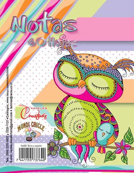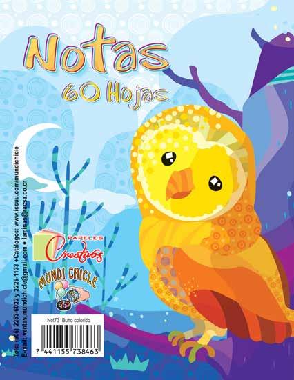 Not73 Buho colorido - Tamaño 5.5” x 4.25” - 60 Hojas