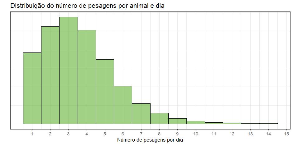 O gráfico acima demonstra que os animais costumam visitar o bebedouro, em média, cinco vezes ao dia, geralmente entre 20 a 40 minutos após o trato. Este é um comportamento natural e previsível, por isso é importante monitorar, pois caso algum animal mude este comportamento, é possível identificar os motivos, como doença, sodomia e outros. Pelo sistema da balança de pesagem voluntária e individual é mais fácil e rápido detectar aqueles com comportamento anômalo e agir rapidamente.