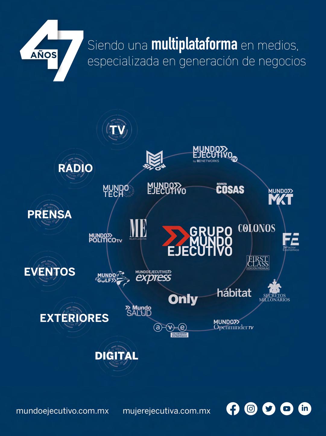 Asistente Editorial: María Eugenia Mata Producción y Control de Calidad: Aarón Rangel Responsable de suscripciones: Irma Ruiz irma.ruiz@mundoejecutivo.com.mx, Martha Santos martha.santos@mundoejecutivo.com..mx Tel. 55 5002 9513