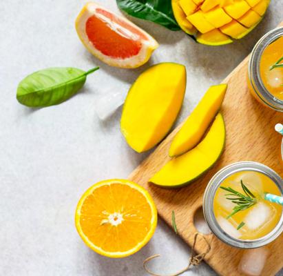 Agrega en una licuadora una taza de mango en trozos, una taza de jugo de naranja, ½ taza de leche de coco y una ½ taza de crema de coco, tres limones y por ultimo hielos. Una deliciosa combinación que tienes que probar.