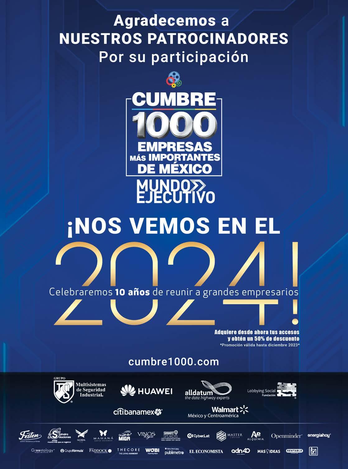 Responsable de suscripciones: Irma Ruiz irma.ruiz@mundoejecutivo.com.mx, Martha Santos martha.santos@mundoejecutivo.com..mx Tel. 55 5002 9513