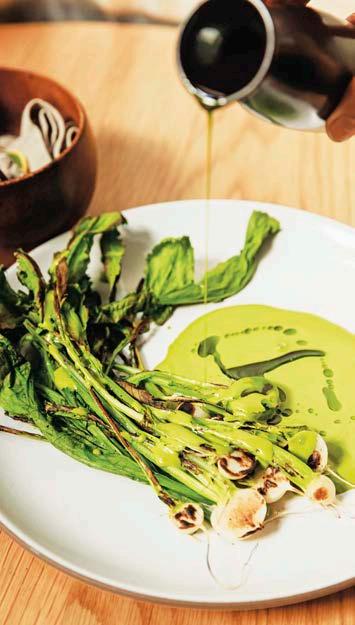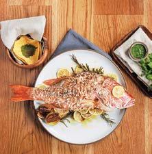 Los platos destacados incluyen el atún tataki en adobo con nopales, escalón y soya ahumada; pargo rojo entero con escamas crujientes servidas con hierbas, cítricos, tortillas de maíz y salsa, y un vibrante mole verde hecho con pepitas, nueces y hierbas servido con nabos a la plancha y tortillas de hoja santa.