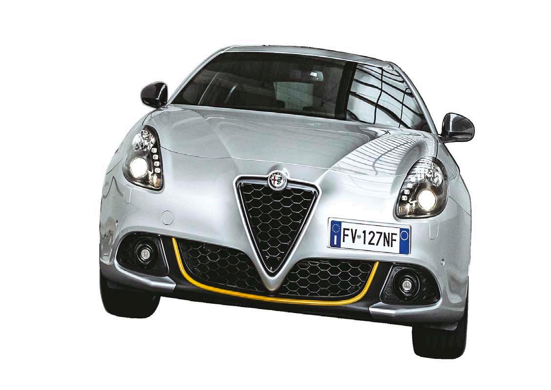 La silueta del Alfa tiene el sello distintivo de la casa de Milán, con detalles elegantes y funcionales, así como líneas de carácter que brindan una imagen única en su clase. Para el 2020 cuenta con faros bi-Xenón con terminado en fibra de carbono, lámparas de niebla delanteras con bisel en color negro, calipers Brembo en color amarillo, rines de aluminio de 18 pulgadas con acabado diamantado, salidas de escape, manijas y carcasas de espejos laterales en terminado Dark Miron. Como detalle adicional y para darle un toque