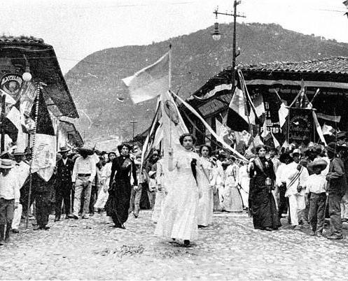 Sin embargo, La Huaca del México revoluciona rio debe entenderse desde su contexto. Aquí las mujeres organizadas portan una estética, donde hay toda una conciencia, de que están en la lucha revolucionaria y que se auto-representan con sus sombreros, como parte de un gremio. La huelga de inquilinos giró en torno de un contexto socio-po lítico tenso en la costa de Veracruz. Dió cabida a: gobernadores radicales, movimientos anarquistas, sindicalistas, socialistas en plena ebullición; tam bién se formaron grupos de representación política gremiales, como partidos y sindicatos, dando pauta a otros movimientos (huelga de electricistas o la de tranviarios); o el conflicto de los estibadores y tra bajadores del mar.