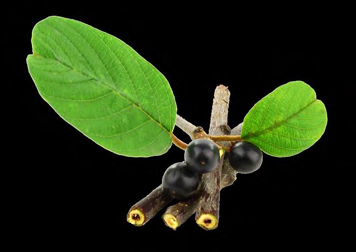 Rhamnus frángula: La frángula es una planta conocida también cómo cáscara sagrada y es muy utilizada en la fitoterapia. Es reconocida por curar diversas dolencias, entre ellas trata proble mas hepáticos, articulares, es cicatrizante de heri das difíciles, elimina el ácido úrico y disminuye el estreñimiento.