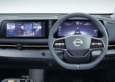 El sistema de tracción en las cuatro ruedas e-4ORCE equilibra el potente desempeño con la capacidad para cualquier tipo de clima. Los motores eléctricos gemelos del sistema proporcionan una conducción equilibrada y predecible, que a la vez puede propor-