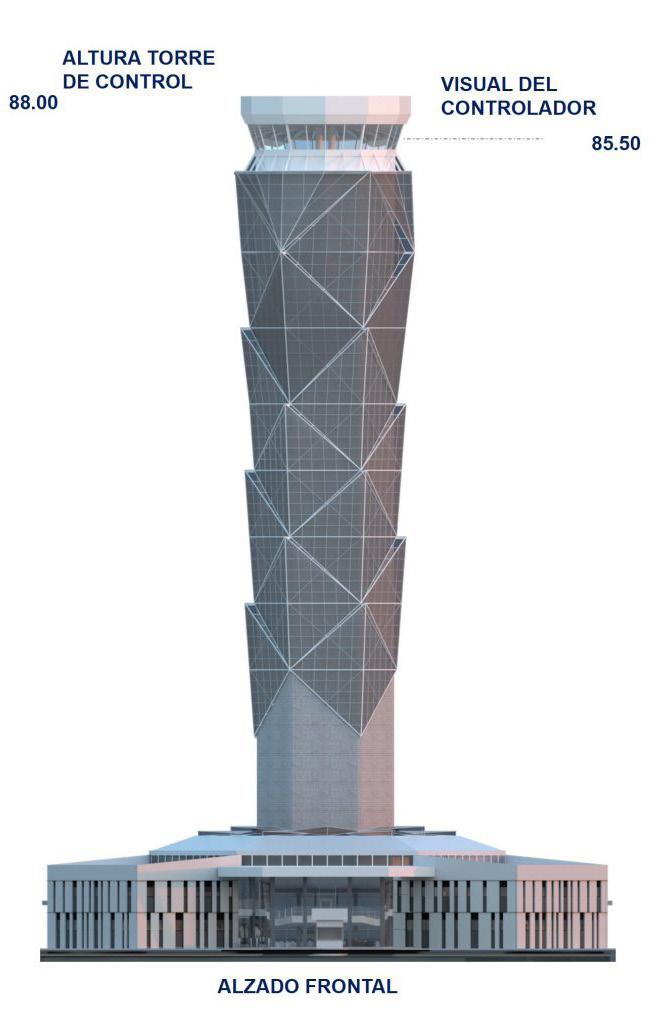 La torre de control mide 88 metros de altura, lo que la convierte en la segunda más grande del país, después de la torre del Aeropuerto Internacional de Cancún que mide 96 metros de alto.
