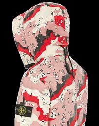 3C + PU DESERT CAMO de Stone Island es la chamarra con capucha hecha de algodón resistente mezclado con hilos Cordura ultra retorcidos. La tela lleva una impresión de pigmento tricolor con la adición de una impresión de poliuretano negro, grueso y brillante con un efecto alquitranado.