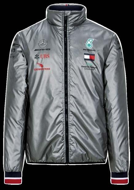 Esta chamarra Lightweight Padded de la temporada 2020 de F1 es parte de la colección del equipo Mercedes-AMG Petronas Motorsport y es como la que usan los pilotos del equipo Lewis Hamilton y Valtteri Bottas. Tiene logotipos impresos en el pecho, las mangas y la espalda.