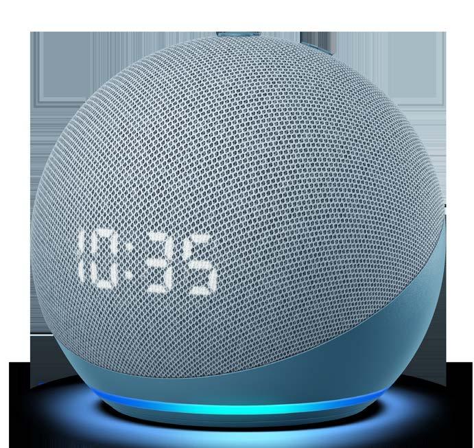 Echo viene con un hub de Casa Inteligente integrado, compatible con Zigbee y Bluetooth Low Energy (BLE). Por otro lado la versión con reloj, viene con el mismo diseño esférico, es compacto, pero incluye una potente bocina frontal de 1.6 pulgadas que produce voces nítidas y bajos equilibrados para un sonido completo que puedes disfrutar en cualquier habitación de tu casa. Incorpora un display LED para que puedas ver la hora, la temperatura, temporizadores y alarmas. Y ahora, la función de tocar la parte superior del dispositivo para posponer una alarma.