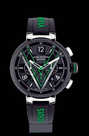 Perfeco para looks casuales y deportivos, esta nueva versión del emblemático reloj Tambour de Louis Vuitton está inspirada en el icónico lienzo Damier Graphite de la casa. Como un sello distintivo, la firma V de Gaston-Louis Vuitton ilumina toda la esfera, agregando un toque moderno. Audaz y fresca, esta versión de cronógrafo se hace eco de las colecciones de Virgil Abloh, con un llamativo contraste entre el negro, el plateado y el verde.