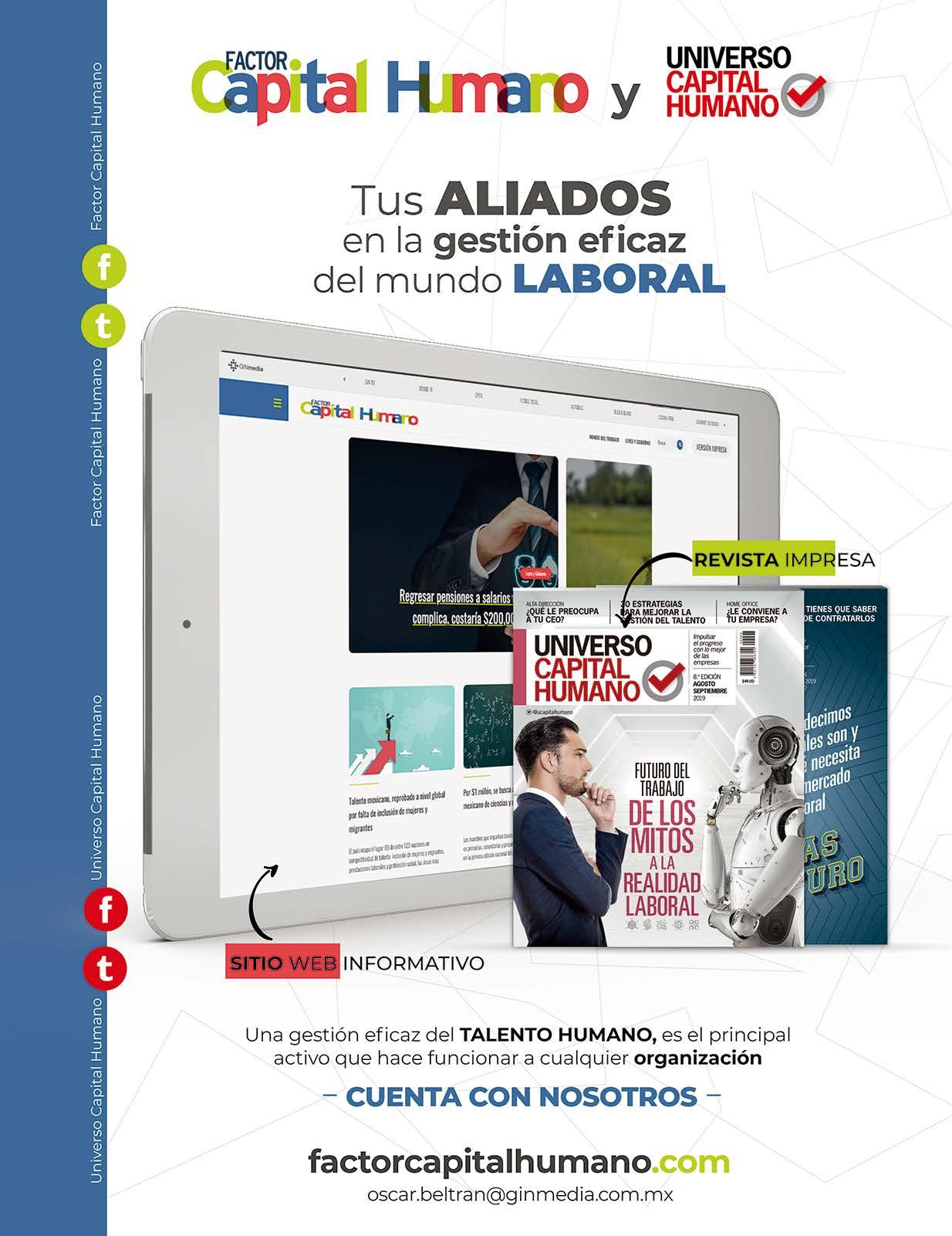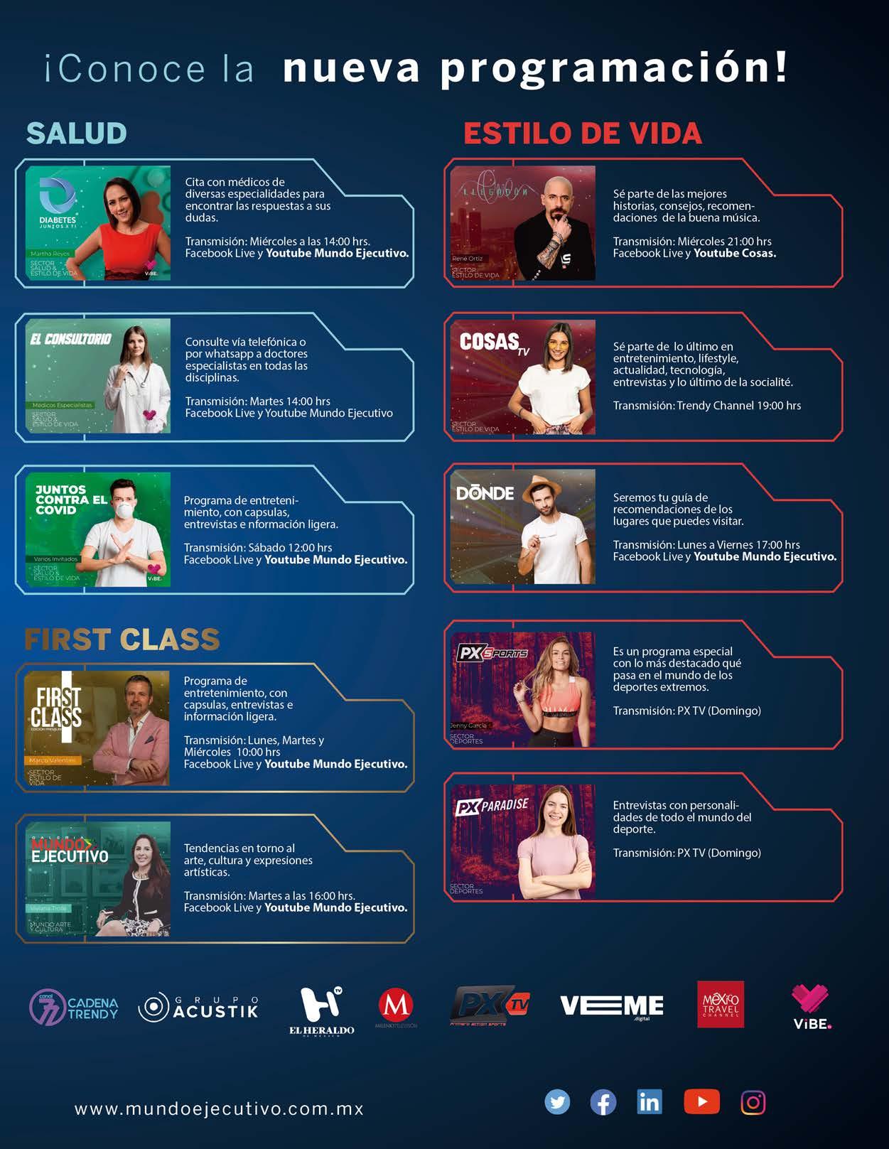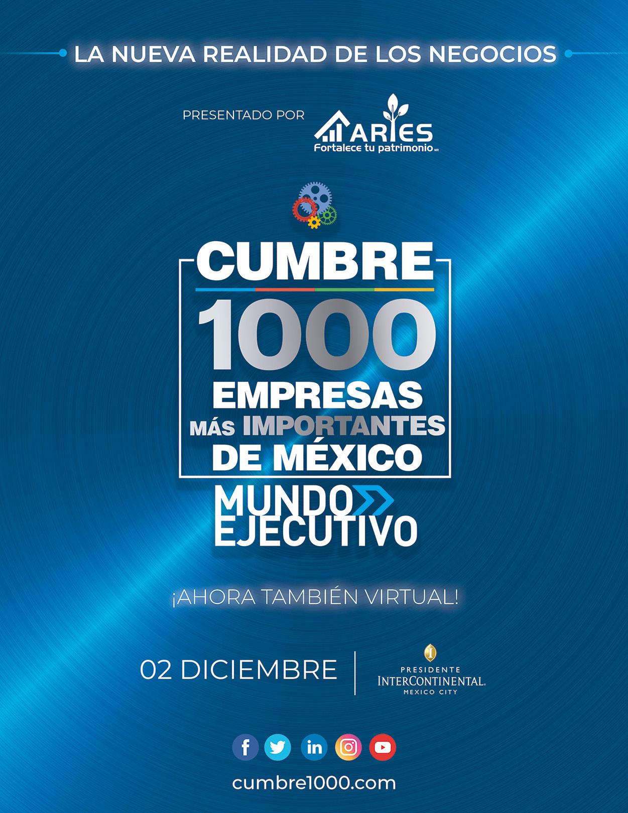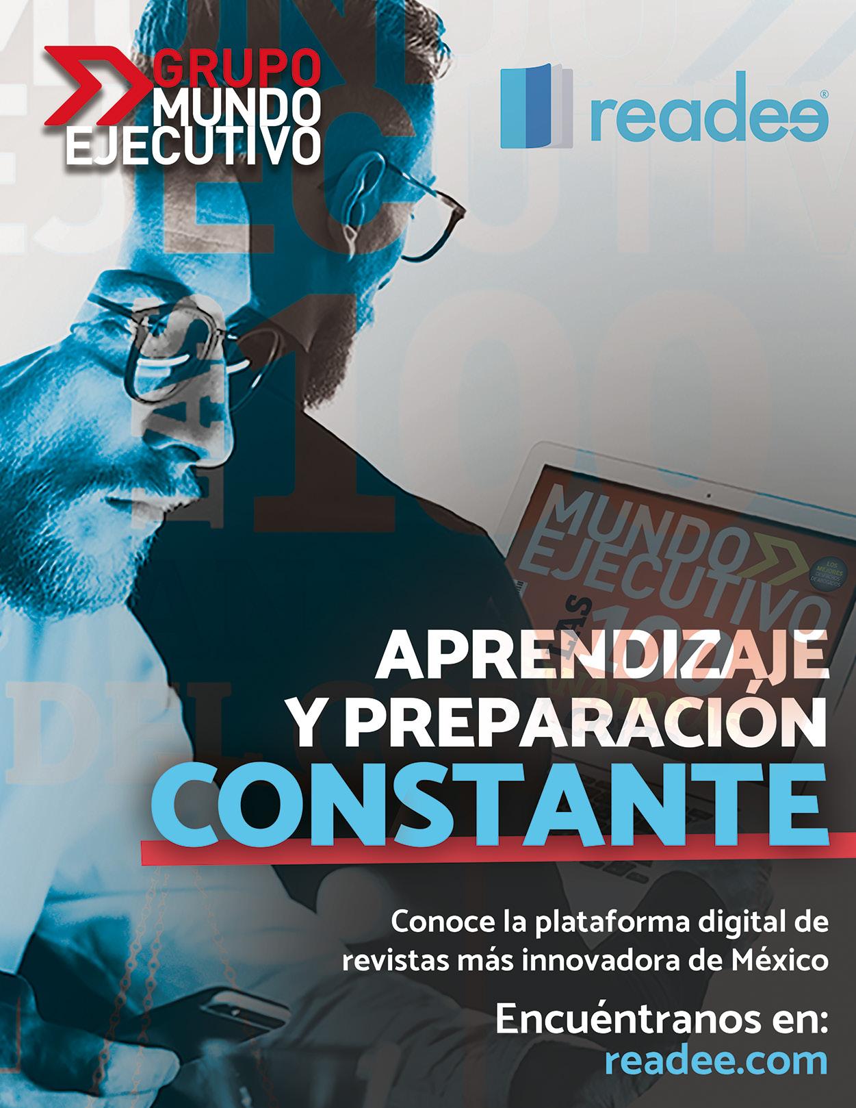 MUNDO EJECUTIVO ® Número 500 Septiembre 2020. Es una publicación mensual de Grupo Mundo Ejecutivo®; Editada y publicada por: Grupo Internacional Editorial, S.A. de C.V., Oficinas Generales: Río Nazas No. 34, Colonia. Cuauhtémoc, Alcaldía Cuauhtémoc, C.P. 06500, Ciudad de México, Teléfono: 55 5002-9500, www.mundoejecutivo.mx, Editor Responsable: Rosa Arlenne Muñoz Vilchis. Certificado de Reserva de Derechos al Uso Exclusivo número 04-2002-060617140200-102. Certificado de Licitud de Título número 6547, Certificado de Licitud de Contenido número 6938 ambos otorgados por la Comisión Calificadora de Publicaciones y Revistas Ilustradas de la Secretaría de Gobernación. Permiso SEPOMEX: PP09 – 0225. Se imprime en EDAMSA Impresiones S.A. de C.V. Av. Hidalgo No. 111, Colonia San Nicolás Tolentino C.P. 09850, CDMX. Tiraje impreso 51,000 ejemplares. Los artículos firmados son responsabilidad de sus autores y no reflejan necesariamente el punto de vista del editor de la publicación o de Grupo Mundo Ejecutivo®. Queda estrictamente prohibida la reproducción total o parcial de los contenidos e imágenes de la publicación sin previa autorización de Grupo Internacional Editorial, S.A. de C.V. © Grupo Internacional Editorial, S.A. de C.V. © investiga sobre la seriedad de sus anunciantes, pero no se responsabiliza con las ofertas relacionadas por los mismos. Esta es una publicación sólo para adultos.