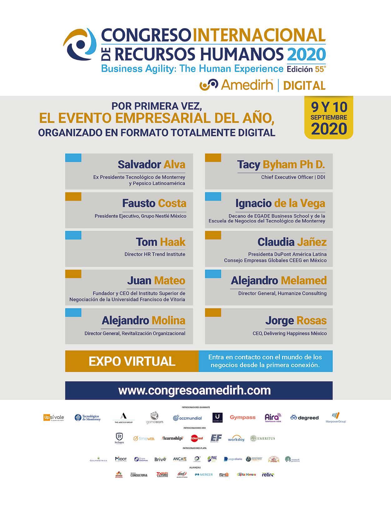 Estos 9 y 10 de septiembre se llevará a cabo la edición 55 del Congreso Internacional de Recursos Humanos, evento por primera vez virtual, en el que coincidirán expertos de diversas áreas, para hablar, precisamente, sobre Agilidad organizacional y la experiencia humana.