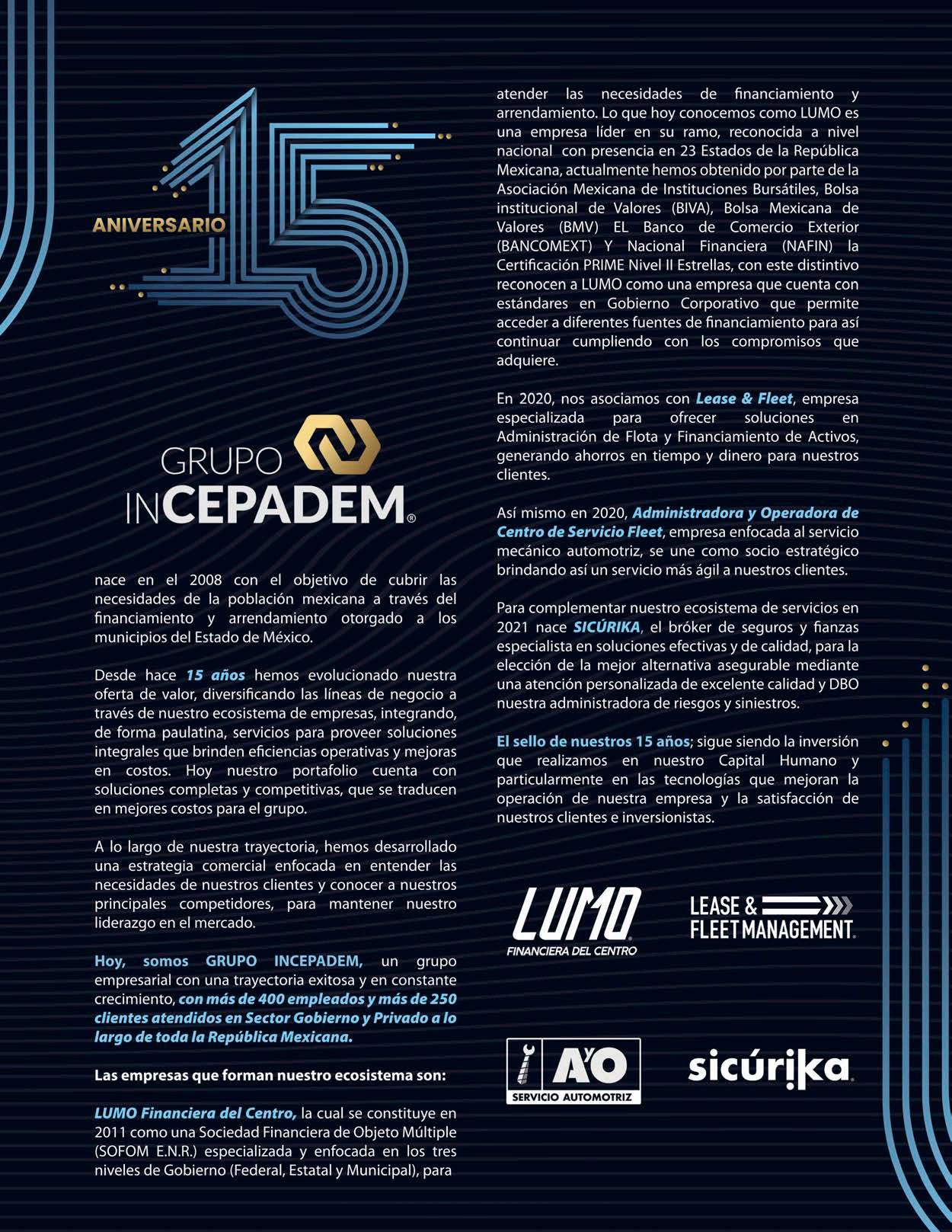 MUNDO EJECUTIVO ® Número 536 Septiembre 2023. Es una publicación mensual de Grupo Mundo Ejecutivo®; Editada y publicada por: Grupo Internacional Editorial, S.A. de C.V., Oficinas Generales: Río Nazas No. 34, Colonia. Cuauhtémoc, Alcaldía Cuauhtémoc, C.P. 06500, Ciudad de México, Teléfono: 55 5002-9500, www.mundoejecutivo.mx, Editor Responsable: Rosa Arlenne Muñoz Vilchis. Certificado de Reserva de Derechos al Uso Exclusivo número 04-2002-060617140200-102. Certificado de Licitud de Título número 6547, Certificado de Licitud de Contenido número 6938 ambos otorgados por la Comisión Calificadora de Publicaciones y Revistas Ilustradas de la Secretaría de Gobernación. Permiso SEPOMEX: PP09 – 0225. Se imprime en SMARTPRESS VISION, S.A. DE C.V., Caravaggio 30, Col Mixcoac, CDMX C.P. 03910, TEL 55 5611 8060. Tiraje impreso 51,000 ejemplares. Los artículos firmados son responsabilidad de sus autores y no reflejan necesariamente el punto de vista del editor de la publicación o de Grupo Mundo Ejecutivo®. Queda estrictamente prohibida la reproducción total o parcial de los contenidos e imágenes de la publicación sin previa autorización de Grupo Internacional Editorial, S.A. de C.V. © Grupo Internacional Editorial, S.A. de C.V. © investiga sobre la seriedad de sus anunciantes, pero no se responsabiliza con las ofertas relacionadas por los mismos. Esta es una publicación sólo para adultos.