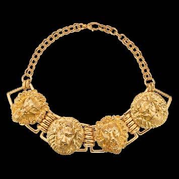 Este llamativo collar se presentó en la pasarela Primavera Verano 2020 en la que los accesorios se unen entre sí para adoptar un lenguaje de expresión personal. La cabeza de león, que refleja la fascinación por la exuberante naturaleza y los animales salvajes que caracteriza la narrativa de Gucci, está elaborada en metal con acabado envejecido para definir este estilo.