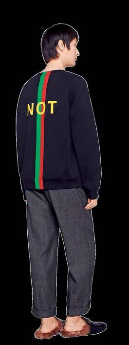 TIME reinterpretación de la banda verde y roja, un código distintivo de Gucci. Para completar el juego de palabras, la impresión “Not” se muestra en la parte posterior de esta sudadera de jersey de algodón de fieltro lavado.