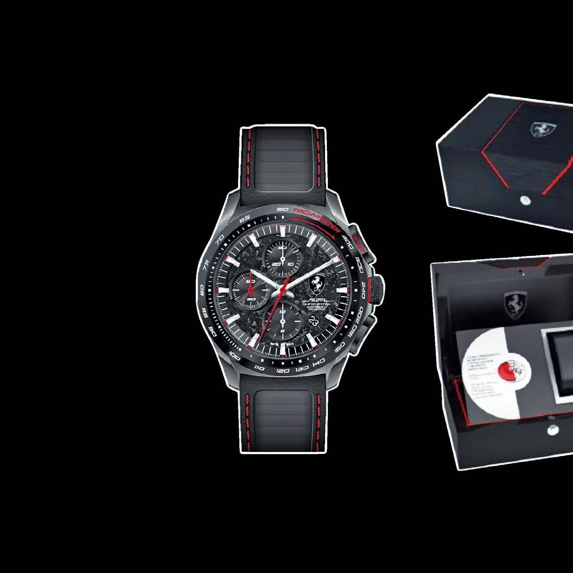Pilota Evo Automático Swiss Made del segmento Off Track de edición limitada tiene caja gris de 44 mm, dial de fibra de carbono forjado, correa de piel acanalada con costuras rojas, cristal de zafiro abovedado, manecillas e índices luminosos y fondo de caja de cristal de zafiro numeradas de 1 a 199 piezas.