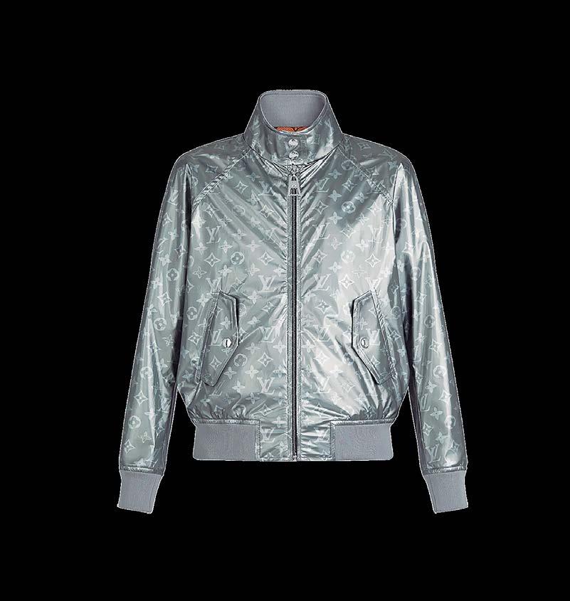 Una atrevida chamarra bomber con el motivo Monogram reinventado en un acabado metálico suave y ligero, con dobladillos acanalados que añaden textura. Dos bolsillos con solapa están sellados con botones a presión brillantes. El borde festoneado de la solapa de la pistola hace referencia a un estilo femenino. El forro de malla con estampado de monograma y la etiqueta de flor de monograma ofrecen una firma clásica.