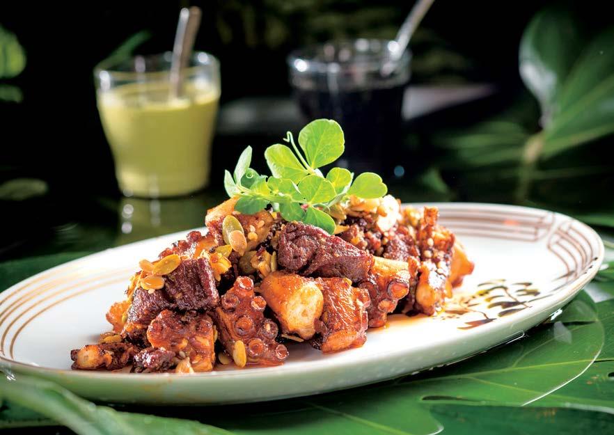 Con un menú con más de 70 de opciones, además de bebidas y coctelería exclusiva creadas por el mixólogo Víctor Montaño, muestra el rostro salvaje e indomable de la cocina de brasa y la cocina japonesa en un mismo espacio, el cual comparte el exuberante carácter de los platillos y sabores que forman parte de este nuevo restaurante.