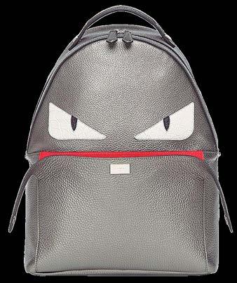 Mochila Fendi con bolsillo Peekaboo Essential en la parte delantera. Espalda de malla técnica transpirable y correas regulables. Cierre de cremallera con doble tirador y bolsillo interno. Confección en piel Cuoio Romano gris grafito. Acabada con el motivo ojos Bugs y detalles de piel de caimán blanca. Interior del bolsillo de piel roja. Accesorios metálicos con acabado en paladio.