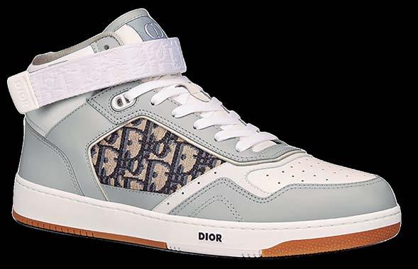 Aunque sea un modelo nuevo de esta colección, el sneaker B27 ya es una pieza esencial de la Maison. Se ha confeccionado en piel de becerro lisa gris y blanca y se ha adornado con aplicaciones con el motivo Dior Oblique en jacquard beige y negro en los laterales. La pieza se ha sublimado con ojales “CD Icon”, así como con numerosos detalles emblemáticos en la suela de goma de dos tonos, el tirador y la parte trasera. Una tira ajustable Dior Oblique completa este diseño.