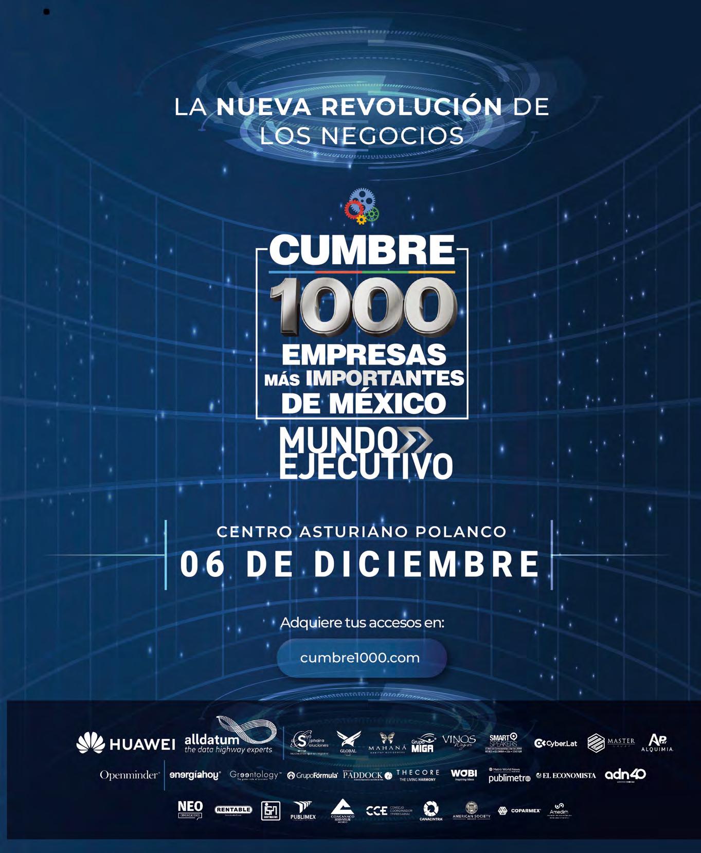 SUSCRIPCIONES: Irma Ruiz irma.ruiz@mundoejecutivo.com.mx - Tels: 55 5002 9429, Martha Santos martha.santos@mundoejecutivo.com.mx - Tels: 55 5002 9513