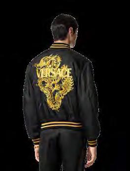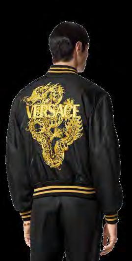 Es el año del Dragón en China y las grandes marcas de moda están a tono con este suceso. Versace presenta colección Year Of The Dragon con esta chamarra bomber de nailon que presenta un logotipo con las letras de ka casa en dorado en la parte delantera delantera y un dragón bordado en la parte posterior, un símbolo auspicioso de honor, suerte y éxito.