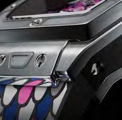 una primicia para Hublot. Cada una de las escamas del dragón está coloreada y nanovulcanizada para integrarse en la correa. Esta delicada tarea decorativa se realiza íntegramente a mano y requiere unas 8 horas por correa. El Spirit of Big Bang Titanium incluye una segunda correa de tela con Velcro en gris titanio. Este homenaje al Año Nuevo chino cuenta con un movimiento automático HUB1710 y tiene una reserva de marcha de 50 horas. //@revistacosasmx