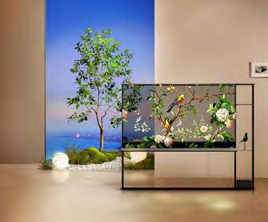 Su pantalla transparente armoniza con su entorno de manera impecable, manteniendo su tamaño de 77 pulgadas. Prácticamente invisible al estar apagada,
